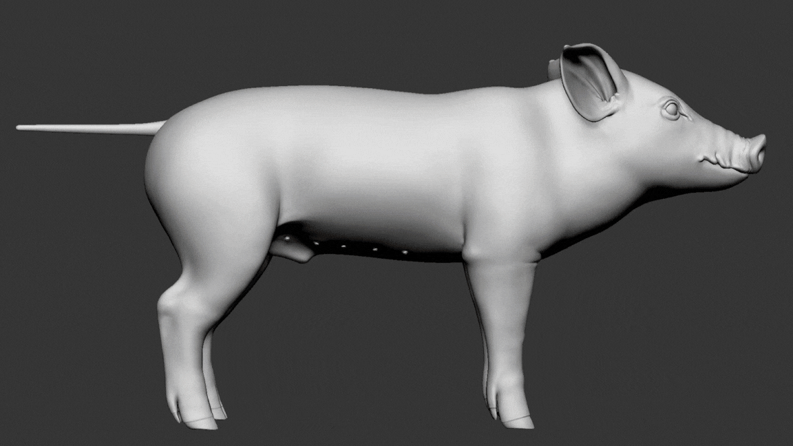 Nous avons créé un modèle 3D de porc photo réaliste destiné à remplacer le vrai animal, présent dans plusieurs séquences du tournage.