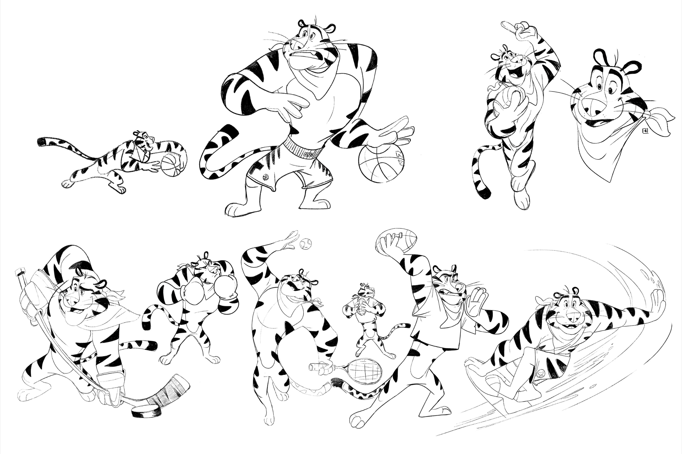 To get the project off to a good start, we had a great time redrawing Tony in different poses and situations. This gave us a good understanding of his proportions and how we were going to animate him.